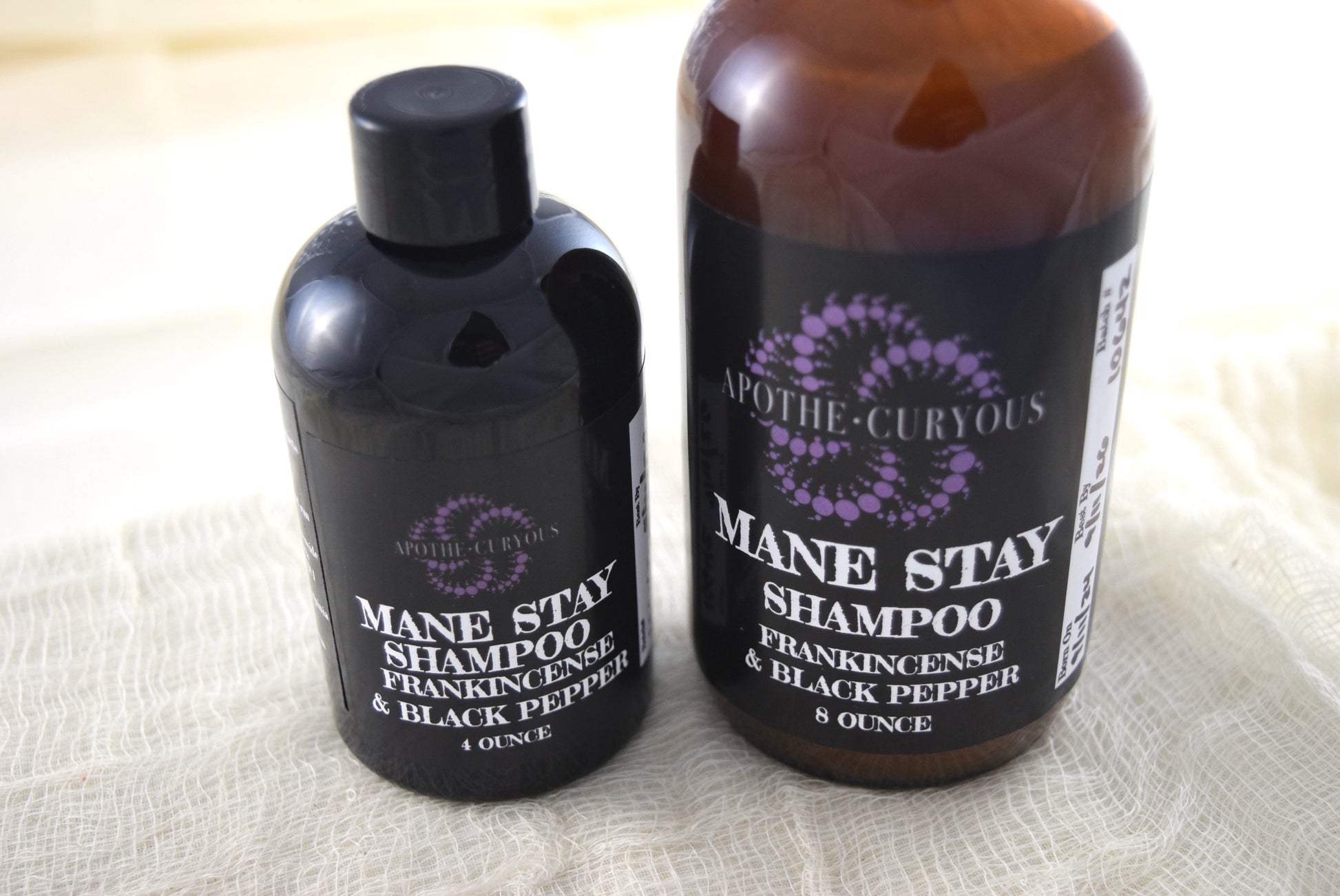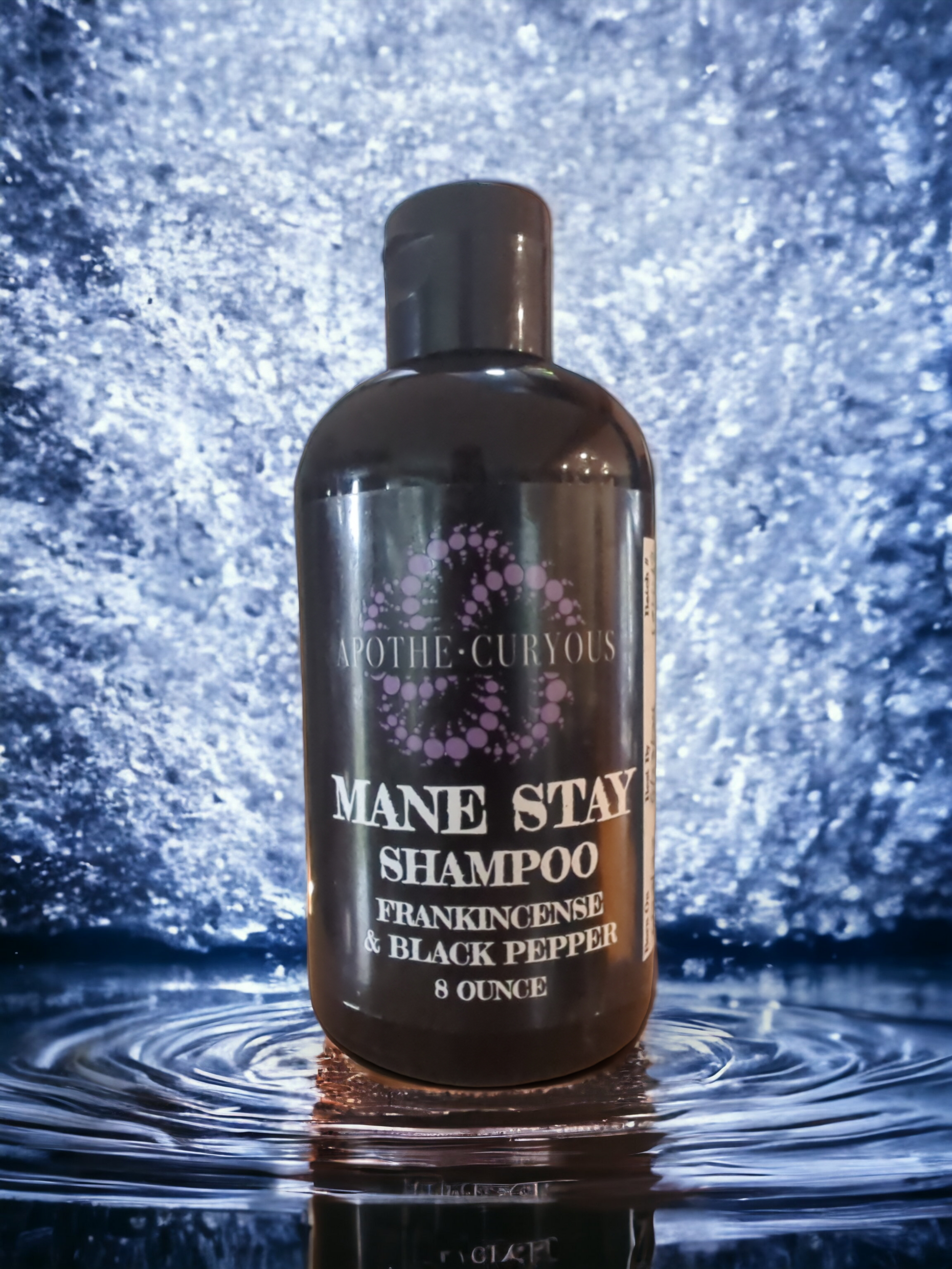 Mane Stay Shampoo has the intriguing fresh and spicy scent of Frankincense and Black Pepper.
